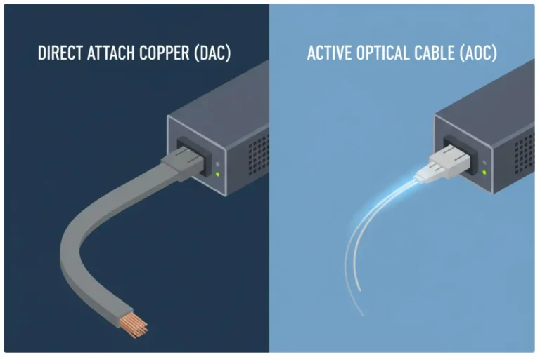 Struggling between DAC and AOC for your 100G rack? This guide compares DAC vs. AOC on cost, distance, and power. Make the right choice for your data center.