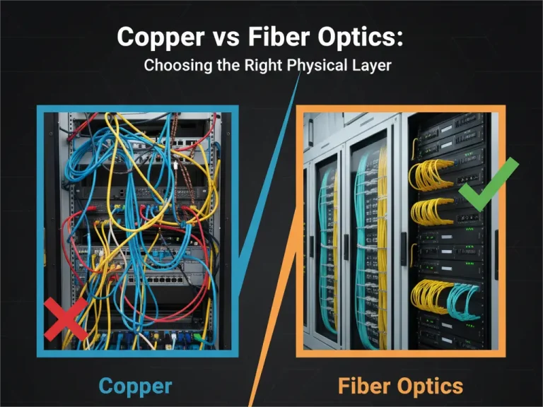 Learn how to strategically deploy copper (Cat6/6a) and fiber optics (SFP/QSFP) across different network layers for optimal performance, scalability, and long-term ROI.