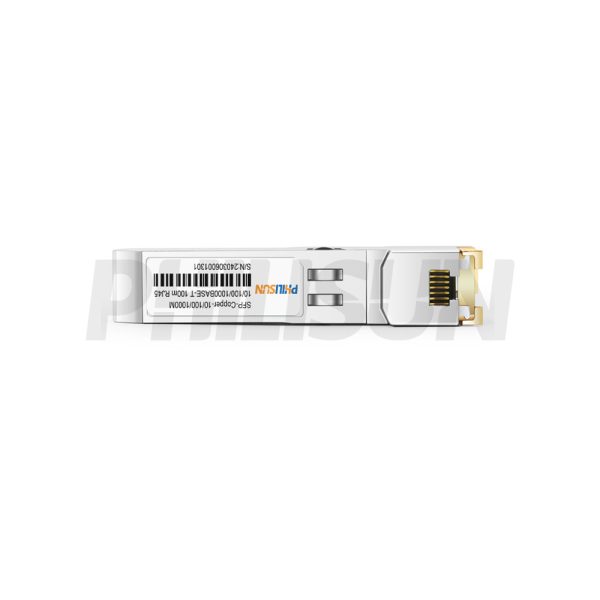 The PHILISUN SFP-Copper 10/100/1000BASE-T 100m RJ45 transceiver is a versatile Small Form Pluggable (SFP) module for 10/100/1000BASE-T applications, developed in line with the SFP Multi-Source Agreement (MSA). It adheres to the Gigabit Ethernet standard as outlined in IEEE STD 802.3, ensuring reliable performance across 10/100/1000BASE-T networks.