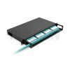 | Removable modular design can achieve rapid replacement and wiring, and reach max capacity 96 fibers in 4 MPO cassette module. | Each single sliding tray can be easily disassembled by pressing its locking clip, and can be easily assembled by simply pushing it back in the opposite direction. | Oval cable entry ports at both lateral sides of the patch panel as the primary cable leading; and the spare round cable entry ports at the back to meet different cable inlet requirements of users. | The front of patch panel is equipped with cable organizing panel, which is convenient for cable management. |