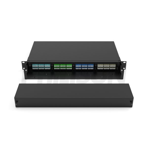 MPO 1U Rack Mount Fiber Patch Panel with 4 Metal Cassettes(8pcs of 12 Fibers MPO to LC Fiber Patch Cord), 96 Fibers, Fixed Type