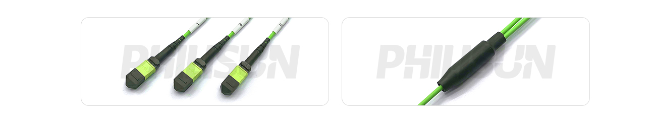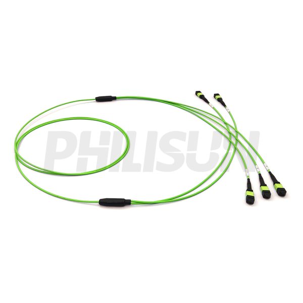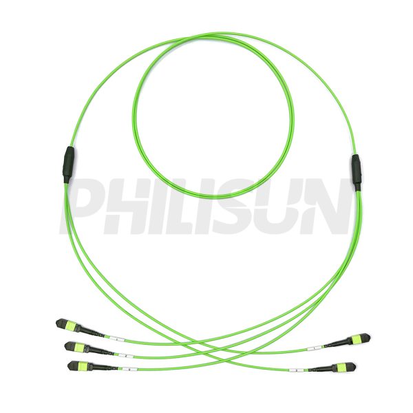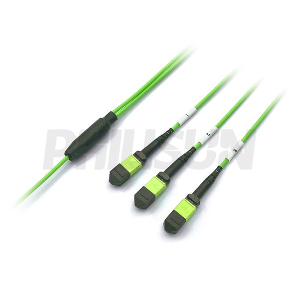 MPO Breakout Cable, 2 x MPO-12 PC/APC(Female/Male) to 3 x MPO-8 PC/APC(Female/Male), 24 Fibers, Multimode(OM5),0.35dB Max, Lime Green