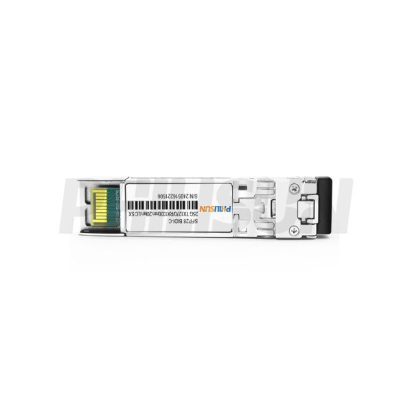 The PHILISUN SFP28 BIDI 25G 1270/1330nm 20km ELR LC SX transceiver is a high-performance module designed for bidirectional optical data transmission over single-mode fiber, supporting distances of up to 20km. It complies with SFF-8472, SFF-8402, SFF-8432, and applicable sections of SFF-8431 standards.Equipped with digital diagnostic monitoring via a 2-wire serial interface, as outlined in SFF-8472, this transceiver ensures reliable performance and precise monitoring for seamless integration into high-speed network applications.