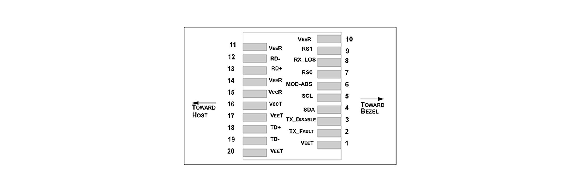 | 10,11,14 | VeeR | – | Connected to signal ground on the host board. | ||||||