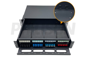 | The Enclosure adopts high-quality guide rail, and the tray can be completely extracted from the chassis, which is convenient for jumper docking and optical cable storage operation. | Flexible configuration by using removable modular design, optional adapter panel or MPO cassette module to realize different configuration requirements of ports and meet various wiring schemes. | The rear of the chassis is equipped with a plurality of cable inlet, and the chassis is equipped with a plurality of optical cable winding and fixing points. | Made of high quality cold rolled steel sheet, compressive and impact resistant. Electrostatic spraying, uniform, wear-resistant and anti-corrosion, beautiful appearance. |