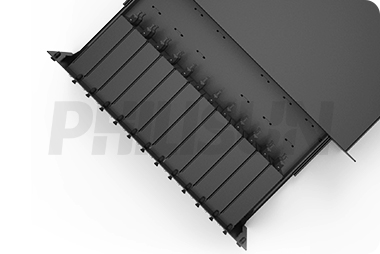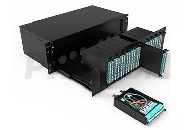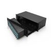 | 3U rack mount patch panel houses 3 independent sliding trays for 288 fibers, each independent tray has sliding rail to pull smoothly. Each tray is not covered by chassis, easy to insert and plug connectors. | Press the plastic shrapnel to pull it out, which can realize the single layer tray to be disassembled independently; Simply push in when install. | Modular MPO cassettes design can achieve rapid replacement and wiring, and reach max capacity 288 fibers in 12 MPO cassette module. |