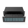 This 3U Sliding MPO Patch Panel is a premium, high-density solution, delivering 144 fibers across twelve durable metal cassettes. The smooth-gliding chassis provides easy, ergonomic access for maintenance and patching, crucial for minimizing downtime in live environments. This unit efficiently supports 72 dual-fiber channels or 144 single-fiber bidirectional channels via twelve MPO-12 inputs, combining the reliability of metal modules with the accessibility of a sliding design for core network aggregation.