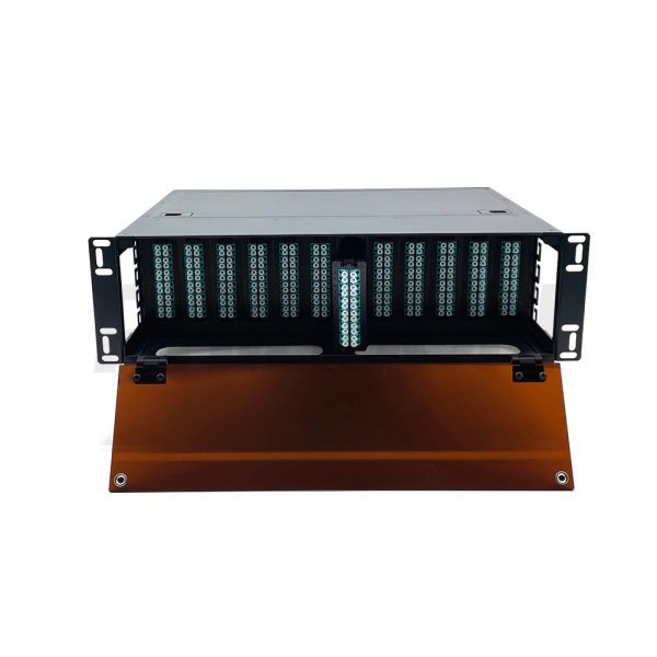 MPO 3U Rack Mount Fiber Patch Panel with 12 Plastic Cassettes(12pcs of 24 Fibers MPO to LC Fiber Patch Cord), 288 Fibers, Fixed Type