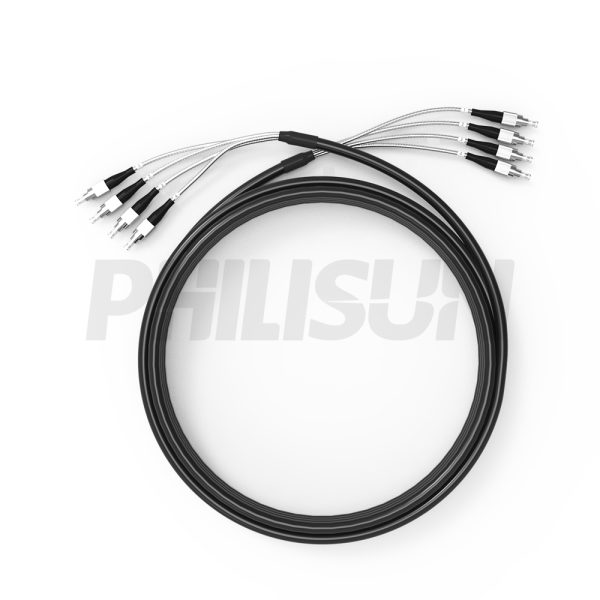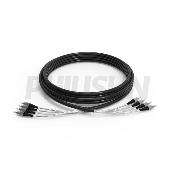 5.0mm, Customized, Indoor Outdoor, Pre-Terminated Armored Fiber Patch Cable, 4 Fibers, Black