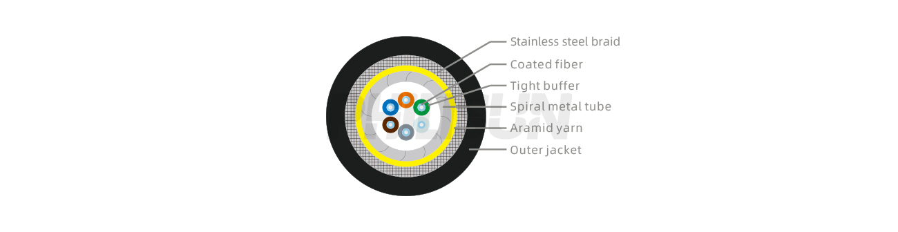 Armored Tactical Cable feature excellent bending resistance, oil resistance and wear resistance. For this reason, armored fiber patch cords are highly suitable for both indoor and outdoor applications, such as network interconnection between two buildings via underground pipelines or direct burial. The armor specifications, fiber types and core counts of this product can be customized to meet specific requirements.