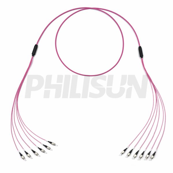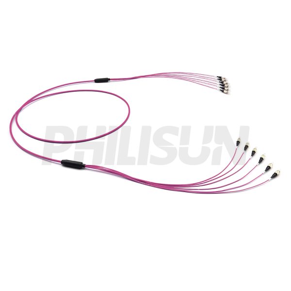 FC UPC to FC UPC, OM4 Multimode, Customized Multifiber Indoor Pre-Terminated Breakout Cable, Aqua/Violet