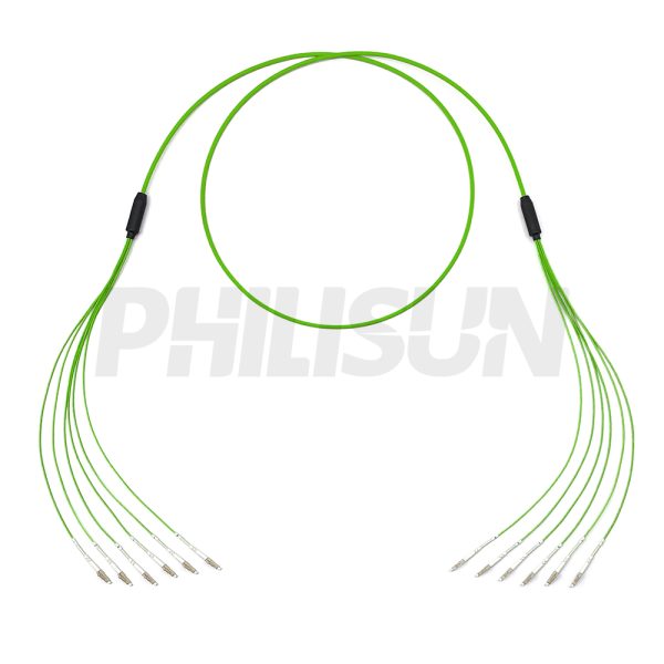 LC UPC to LC UPC, OM5 Multimode, Customized Multifiber Indoor Pre-Terminated Breakout Cable, Lime Green