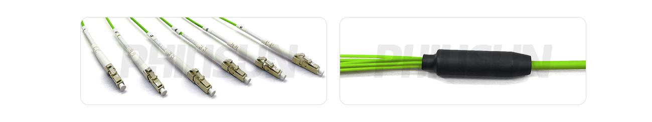 Indoor Pre-terminated LC Multi Mode OM5 Multi-fiber Breakout Cable is a cost-effective, pre-assembled cable primarily designed for indoor interconnection between transmission equipment and patch panels or other similar fixed routing applications. This fiber optic cable features an industry-standard flame-retardant jacket, and its connectors comply with EIA/TIA 604-4 standards, making it suitable for high-speed cabling networks.