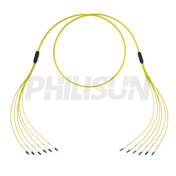 Indoor Pre-terminated LC Single Mode Multi-fiber Breakout Cable is a cost-effective, pre-assembled cable primarily designed for indoor interconnection between transmission equipment and patch panels or other similar fixed routing applications. This fiber optic cable features an industry-standard flame-retardant jacket, and its connectors comply with EIA/TIA 604-4 standards, making it suitable for high-speed cabling networks.