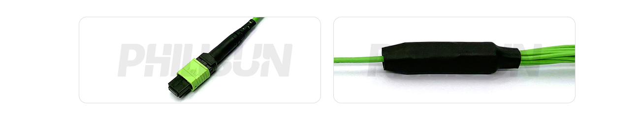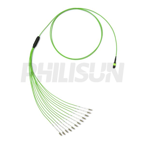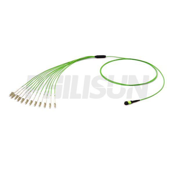 MPO Harness Cable, MPO-12 PC/APC(Female/Male) to LC PC/APC, 12 Fibers, Multimode(OM5), 0.35dB Max, Type A/AF/B/U, Lime Green