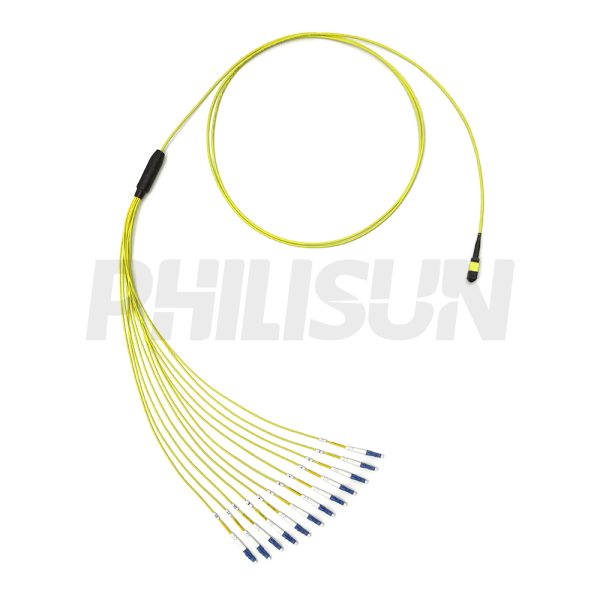 MPO Harness Cable, MPO-12 APC(Female/Male) to LC APC, 12 Fibers, Singlemode, 0.35dB Max, Type A/AF/B/U, Yellow