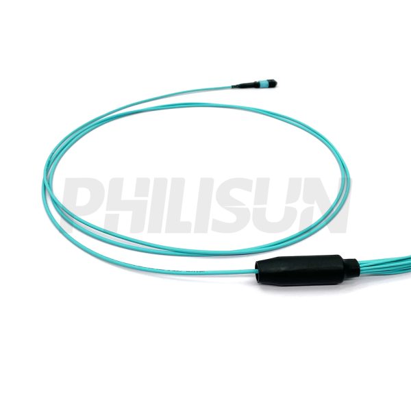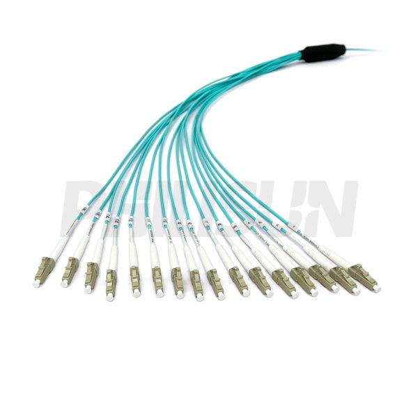 MPO Harness Cable, MPO-16 PC/APC(Female/Male) to LC PC/APC, 16 Fibers, Multimode(OM3), 0.35dB Max, Type B, Aqua