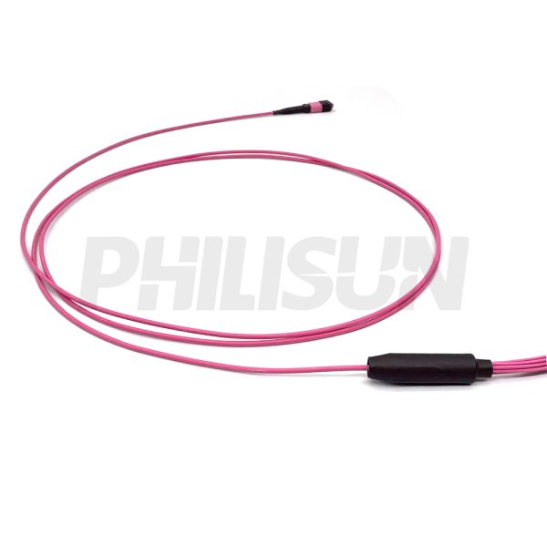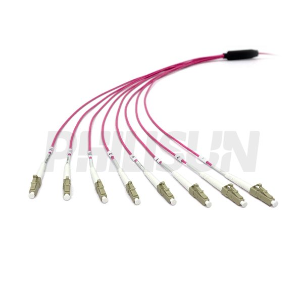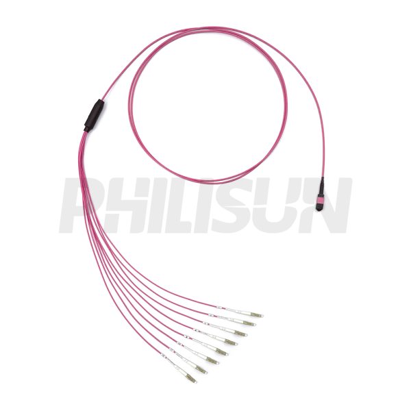 MPO Harness Cable, MPO-8 PC/APC(Female/Male) to LC PC/APC, 8 Fibers, Multimode(OM4), 0.35dB Max, Type A/AF/B/U, Aqua/Violet
