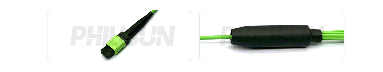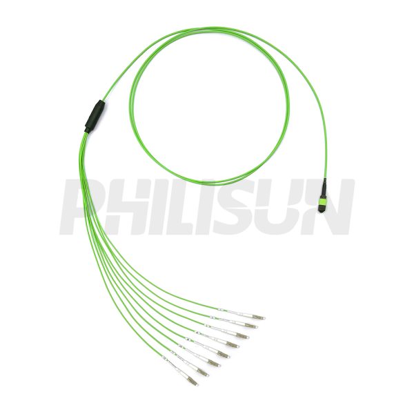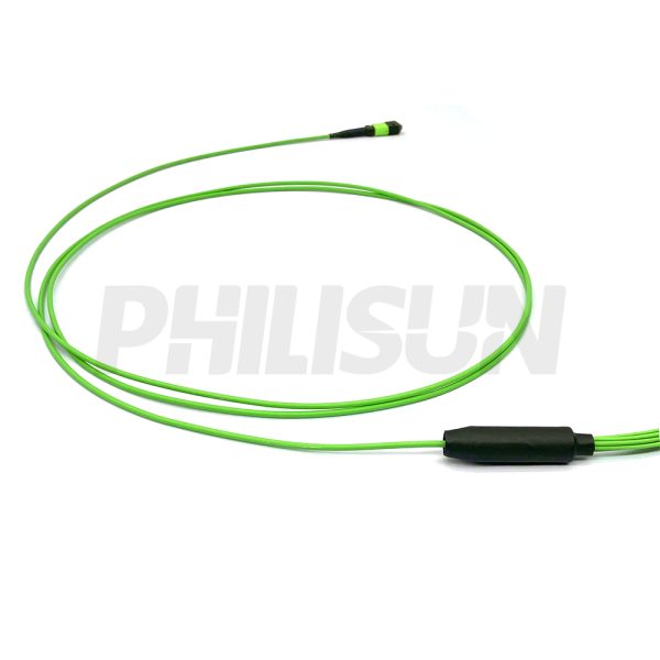 MPO Harness Cable, MPO-8 PC/APC(Female/Male) to LC PC/APC, 8 Fibers, Multimode(OM5), 0.35dB Max, Type A/AF/B/U, Lime Green