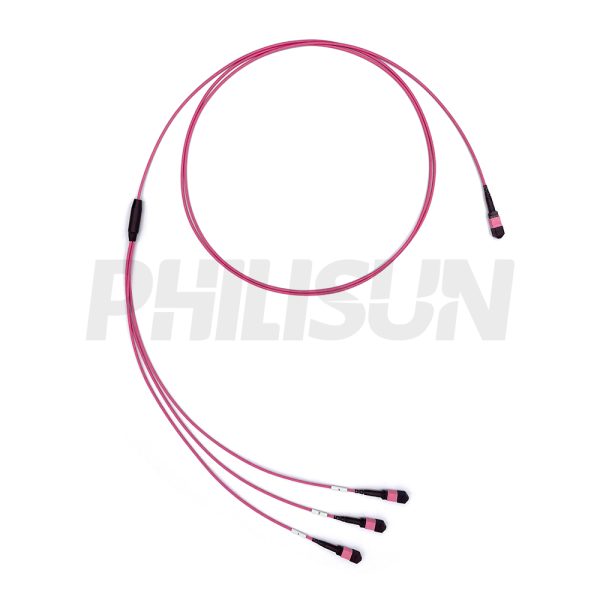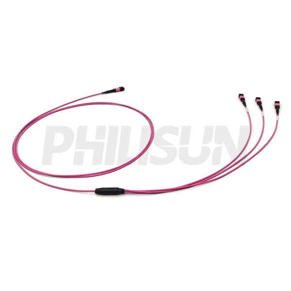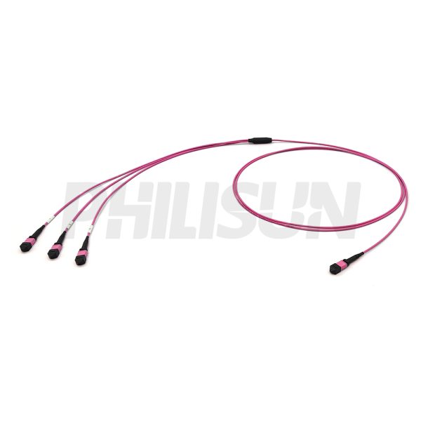 MPO Breakout Cable, MPO-24 PC/APC(Female/Male) to 3 x MPO-8 PC/APC(Female/Male), 24 Fibers, Multimode(OM4),0.35dB Max, Aqua/Violet