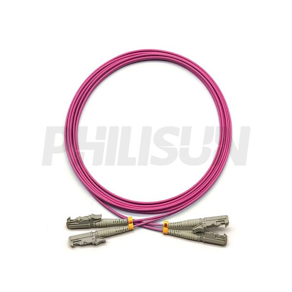 This E2000 to E2000 OM4 Multimode Duplex Fiber Patch Cable provides vital interconnect and cross-connect for applications over data centers and telecommunication networks. As a pre-terminated cable, it enables a complete Plug & Play solution for rapid installation of large cabling systems. It utilizes bend-insensitive fiber which has less attenuation when bent or twisted compared with traditional cable, making installation and maintenance more efficient. This cable is ideal for connecting 1G/2.5G/4G/10G/25G Ethernet connections, offering low signal attenuation and high bandwidth for medium-distance transmission.
