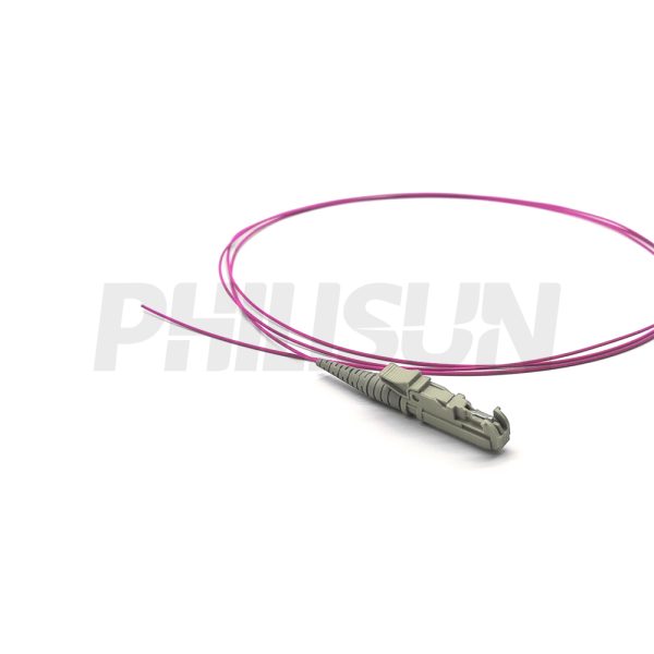 Fiber Pigtail, E2000 UPC to Unterminated, Simplex, OM4 Multimode, 0,9mm, Beige