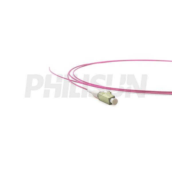 Fiber Pigtail, LC UPC to Unterminated, Simplex, OM4 Multimode, 0,9mm, Beige