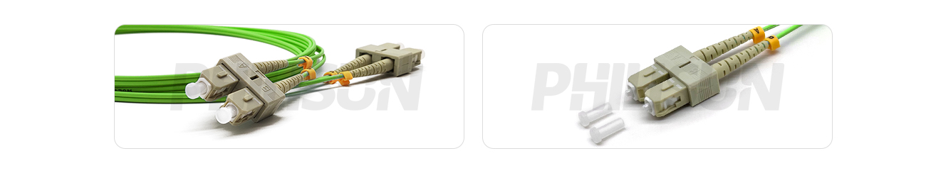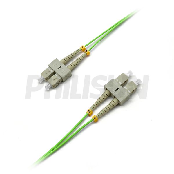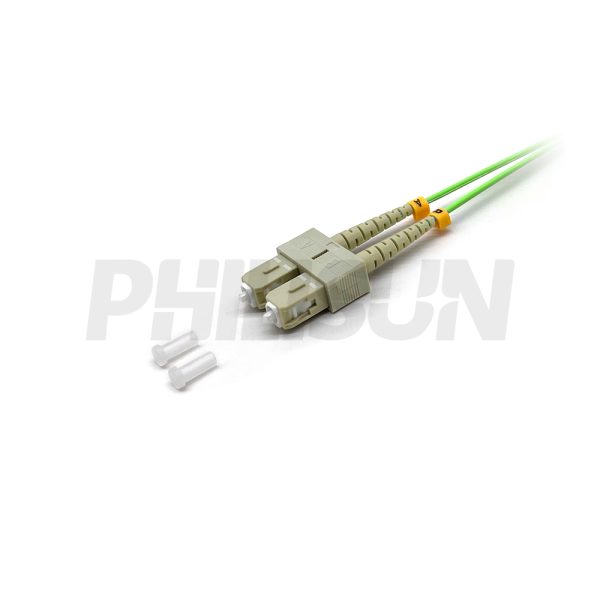 Fiber Optic Patch Cable, 2 Fibers, SC UPC Duplex to SC UPC Duplex, OM5 Multimode, Lime Green