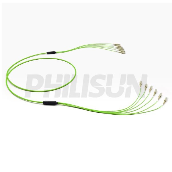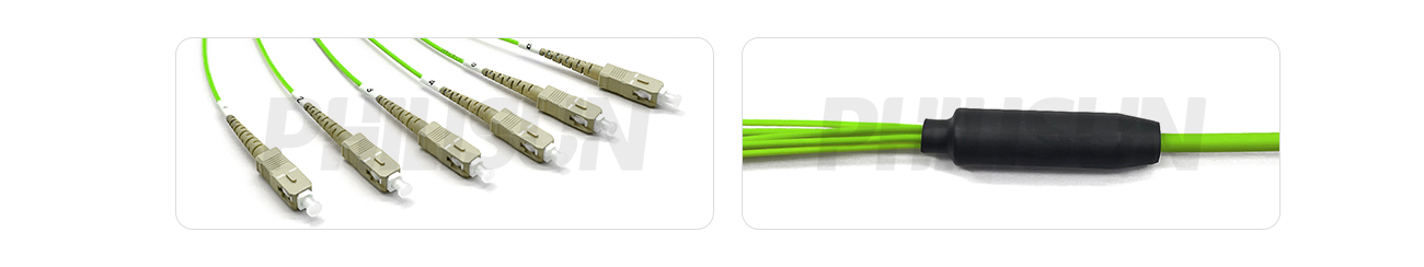 Indoor Pre-terminated SC Multi Mode OM5 Multi-fiber Breakout Cable is a cost-effective, pre-assembled cable primarily designed for indoor interconnection between transmission equipment and patch panels or other similar fixed routing applications. This fiber optic cable features an industry-standard flame-retardant jacket, and its connectors comply with EIA/TIA 604-4 standards, making it suitable for high-speed cabling networks.