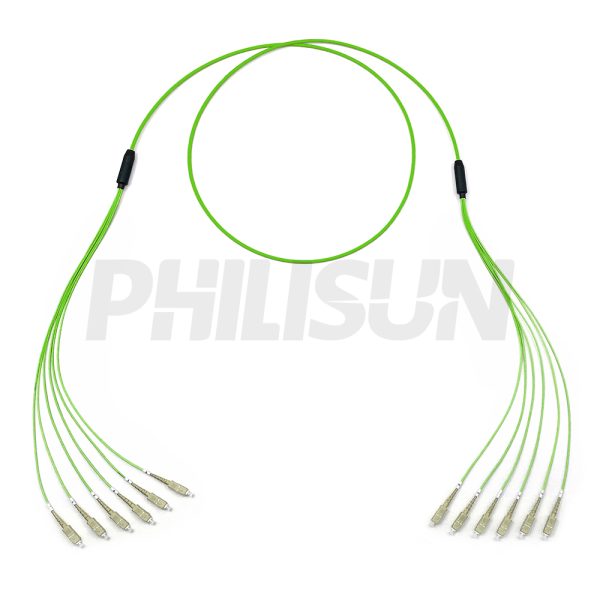 SC UPC to SC UPC, OM5 Multimode, Customized Multifiber Indoor Pre-Terminated Breakout Cable, Lime Green