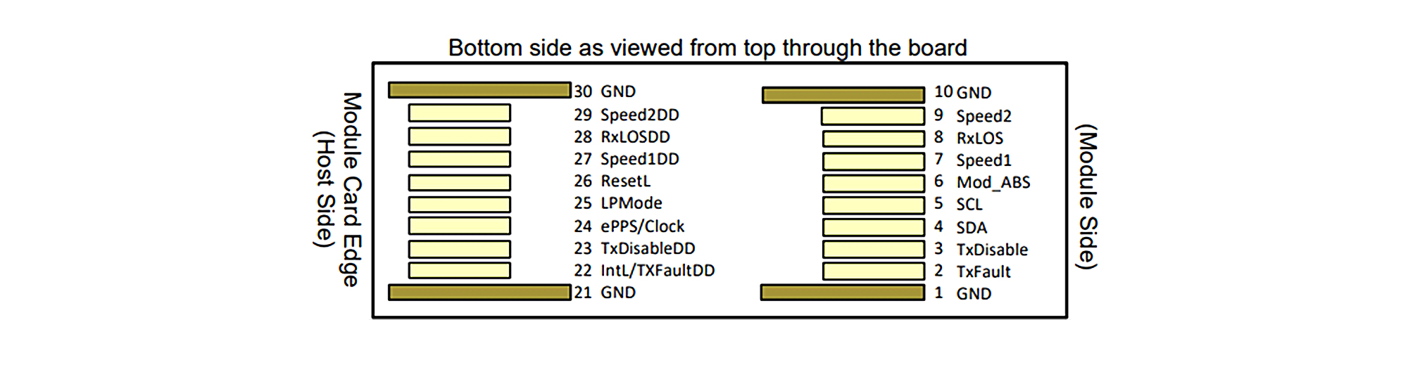 | 22 | IntL/ TxFaultDD | Interrupt: optionally configured as TxFaultDD via TWI as described in the SFP-DD MIS | |||||||