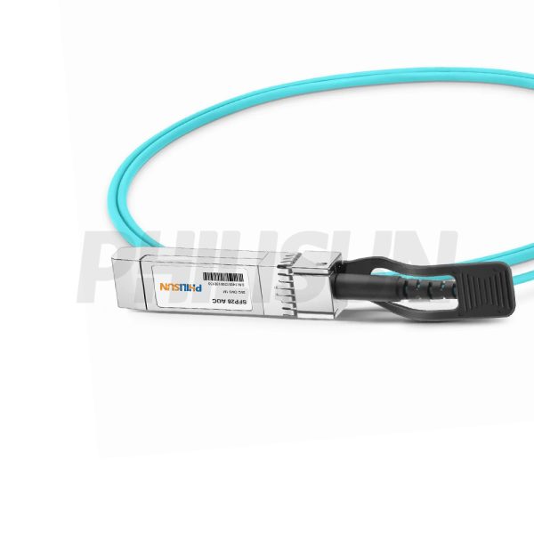The PHILISUN SFP28(25G) Active Optical Cable is a direct-attach fiber assembly utilizing SFP28 connectors and the Multi-Mode Fiber (MMF) scheme. The product complies with the SFF-8431 MSA standard and is suitable for 25Gbps connections within racks and across adjacent racks. It uses OM3/OM4 Multimode Fiber. Its compact structure and fully sealed integrated optics reduce costs compared to conventional optical modules and jumpers, while significantly improving reliability and reducing maintenance. This AOC guarantees broad compatibility with major vendor platforms including Cisco, H3C, Huawei, Juniper, and Arista, and more.