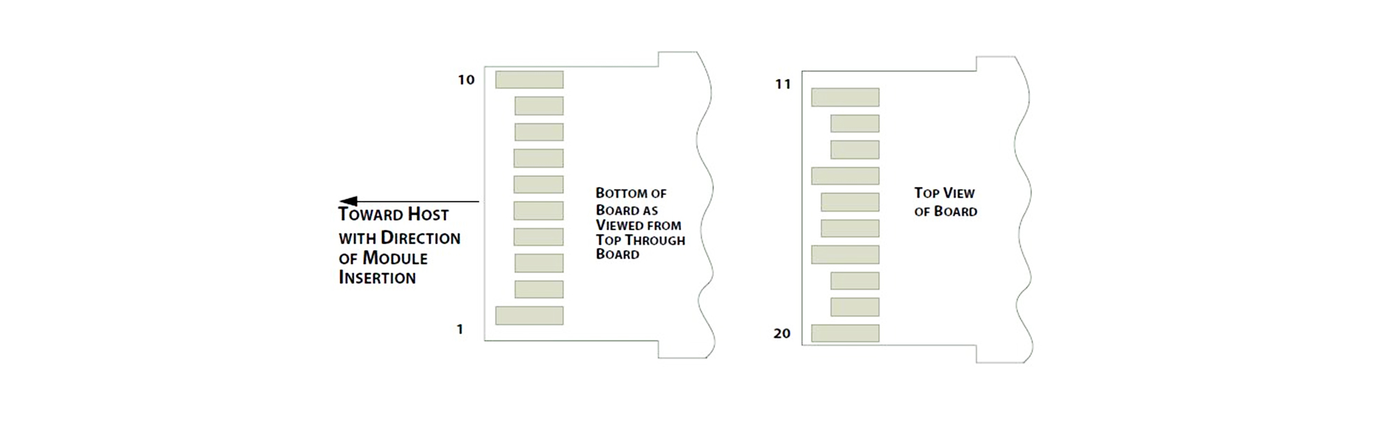 | Notes: 1. Module ground pins GND are isolated from the module case. 2. Shall be pulled up with 4.7K-10Kohms to a voltage between 3.15V and 3.45V on the host board. |